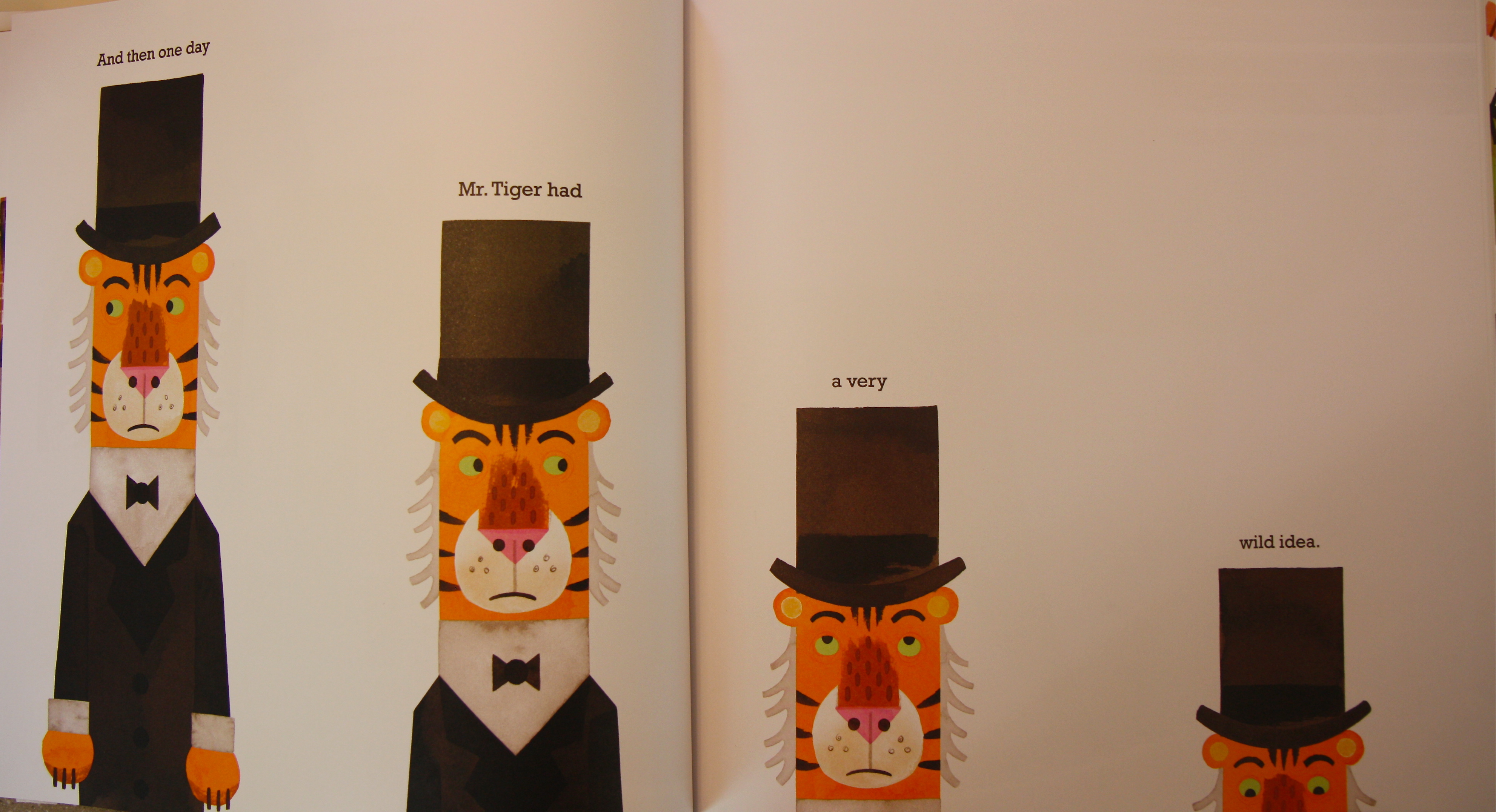My children’s favorite spread, where Tiger literally changes his (and our perspective) as–we realize in the next page–he lowers himself onto all fours.