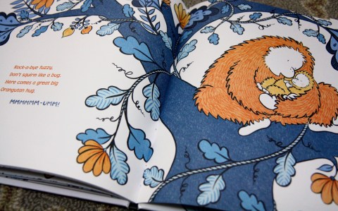 This is all to say that I can relate to each of the animal mothers in the darling new picture book, Mama’s Kisses (Ages 1-4), who are eager and ready to bestow kisses and cuddles on their young brood at bedtime. My kids may be too old for this book (stop it, just stop it!), but it nevertheless charmed every ounce of my maternal being. With spot-on rhyming by Kate McMullan (whose I Stink will forever be imprinted on JP’s second year of life) and whimsically but unsentimentally illustrated by Tao Nyeu (whose abstract orchestration of orange and blue began in this favorite), Mama’s Kisses is a rollicking seek-and-find jungle adventure.