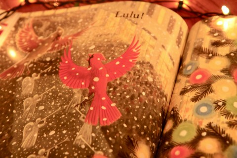 I’m pleased to report that this year, according to our family, a new classic has been born. Matt Tavares’ Red and Lulu has everything we’re looking for in a Christmas book, beginning with a cover—two bright cardinals soaring through soft snow above the illuminated tree in Rockefeller Center—which is sheer gorgeousness. Is there anything more romantic than New York City in the snow at Christmastime?