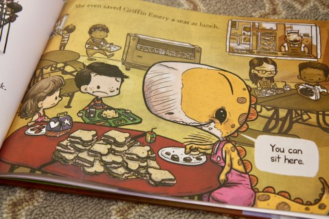 T.Rexes get very hungry, and the 300 tuna sandwiches Penelope’s dad packs in her lunch each day do little to squash her propensity for the taste of young humans. And so, even while she wants more than anything for the other children to like her—to invite her to join their games on the playground and sit next to her at lunch—she keeps blowing it. She. can’t. stop. eating. her. classmates. The fact that she spits them out when reprimanded by her teacher does little to reassure her victims.