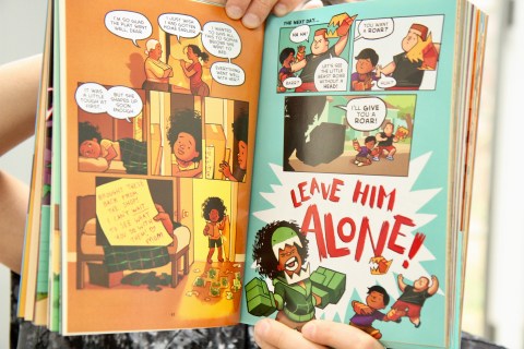 JP (age 11): All the different kids in the neighborhood take their personalities and put them into different characters and costumes that are unique to them and super powerful. It’s a story about having fun together and including everyone.