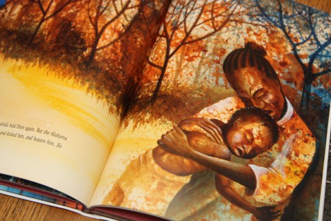 A legal win won’t necessarily correct a human wrong. Isabella learns of the devastating abuse suffered by her son at the hands of his slave owner, wounds from which he will never fully recover. As the Author’s Note elaborates, mother and son will eventually become estranged. This spread is one of the most upsetting in the book—there is little to separate the embracing mother and child from a landscape splattered by what looks like blood-tinged mud—and a powerful visual for our children to witness. “‘What is this slavery,’ wondered Isabella, ‘that it can do such dreadful things?’”