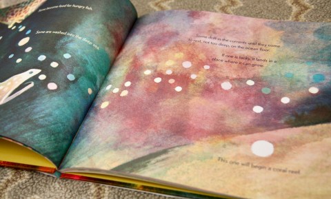 The Brilliant Deep begins by teaching us a bit about coral spawning, which happens on the night following a full moon. (Did you know that coral spawns? I did not.) On this night, millions of tiny lives are released into the water—“swirl[ing] like a snow globe”—and, while few will survive hungry fish and strong currents, it only takes one nestling into the perfect spot on the shallow ocean floor to grow into an entire coral reef.