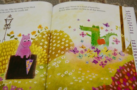 A crocodile named Norris, by all accounts a shiny, happy creature (“who danced everywhere he went, even uphill”), doesn’t have any experience with grief—though he has something equally valuable. He has curiosity. He comes upon Elba, sitting on her block, and asks her to a picnic.