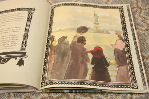 This is what bravery looks like: re-engaging with a world that has upended you. Gittel claps along to men singing on the ship; she joins in a card game with other children. She allows her heart to lift at the sight of the Statue of Liberty. Even when she arrives on Ellis Island and discovers her cousin’s address is smeared beyond legibility, Gittel charms a Yiddish interpreter into devising a clever plan to help her.