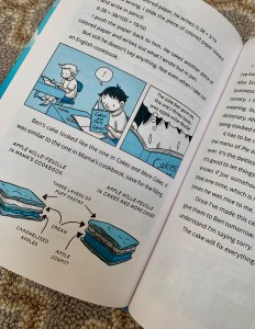 Surprisingly, my son’s favorite part of this novel wasn’t the funny Wimpy Kid-style comics or the spot-on sibling banter. It was these cakes. Red velvet cake, triple cookie cake, Nutella cream cake…all the way to the pièce de résistance, the Rainbow Cake (recipe included). Witnessing these cakes come together is, for us, almost as fun as we imagine tasting them would be. These cakes may bring about messes and meltdowns and mis-communications, but creating and sharing them also becomes a way for Jingwen to take back some of the agency he has lost in the move. Baking is a lifeline of sorts, something Jingwen can put out into the world to begin to make sense of the Martians around him.