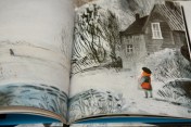 Written by Timothée de Fombelle and first published in France in 2014, this poignant 60-page picture book-novella hybrid has recently been translated into English by Sam Gordon and published in an intimate square-trim format, with illustrations by the always exquisite Isabelle Arsenault. It’s a book ripe with contrasts: the grey of the winter landscape contrasted with the fiery red of Rosalie’s hair; the destruction of war contrasted with daily discoveries inside a schoolhouse; the coldness of uncertainty and fear contrasted with the warmth of a mother’s embrace.