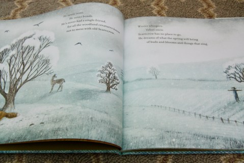 It’s precisely the cyclical nature of the seasons which makes greeting October at once thrilling and foreboding. Corn mazes and apple orchards and cozy gingham flannel may abound. (Do me a favor and sneak a peek under the book’s cover.) But we also know what’s coming. We know there may be days ahead where we’ll feel like we’re stuck, bent over a pole, in the middle of a blizzard. When we feel the lonely tug of loss. Still, The Scarecrow reminds us that, even in life’s predictability, delightful surprises can happen—and some of these surprises may give a season entirely new life.