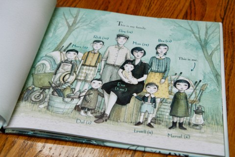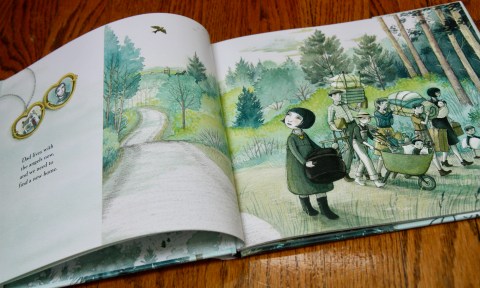 In her exquisite new picture book, Home in the Woods (Ages 4-8)—one of the finest examples of bookmaking I’ve ever encountered—Eliza Wheeler invokes her grandmother’s childhood to tell the story of a family who manages to make magic for themselves, even in the toughest of times. (You might remember Wheeler from this long ago favorite. Since then, she has mostly illustrated others’ texts. So happy to see her back in the seat of author and illustrator, because her writing is every bit as evocative as her art.)