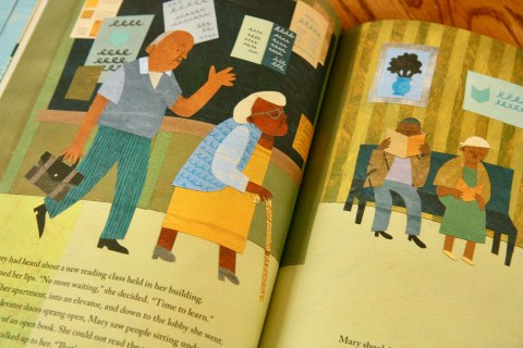 As Mary learns to read, the landscape around her transforms: where once there were squiggles, now there are words. This visual transformation is surpassed only by the emotion on the faces of those who crowd around her dignified form as she reads aloud to friends and acquaintances at her legendary birthday parties. Watching someone relish a love of learning is at once transportive and contagious. May Mary’s example inspire us, as my own grandmother has me, that we are never too old to learn.