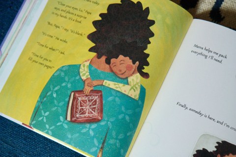 Then, one day, Papa brings her the most special surprise of them all. It’s a book. “‘But Papa,’ I say, ‘it’s blank.’” The time has come for Lulu to fill her own pages. As Lulu realizes the significance of this gift, she throws her arms around her father. “Finally, someday is here, and I’m crossing the oceans with Papa.”