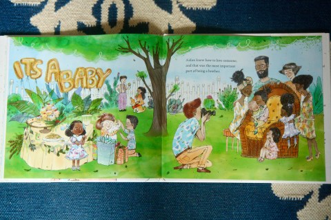 When Aidan learns his family is expecting a second baby, he feels the weight of the responsibility even more acutely given his personal journey. “He wanted to make sure this baby would feel understood right away.” He shops with his mother for gender-neutral clothing and with his father for gender-neutral paint. As his mother’s belly expands, everywhere they go they get the question, “Are you having a boy or a girl?” Aidan worries about the effect this question will have on this unborn (listening?) baby. He is relieved when his mother answers these strangers with, “I’m having a baby.” (As someone who worked in children’s retail for a decade, I admittedly asked this question of my pregnant clients a dozen times a day. I’m grateful for children like Aidan—and his “own voices” creator Kyle Lukoff—who are calling my attention to the gender norms and expectations we attach to our children, both before and after they’re born.)