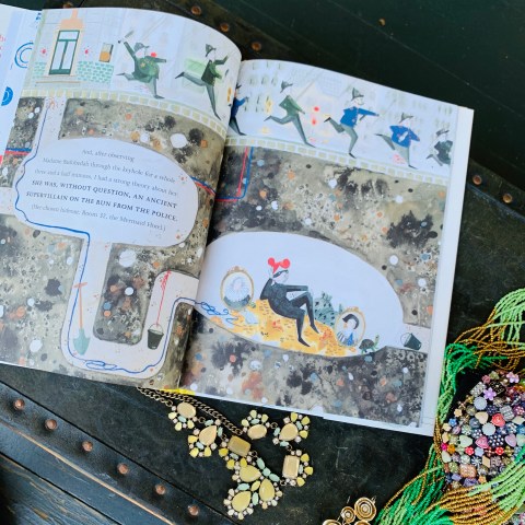 Mabel has been raised in the Mermaid Hotel, a grand, balcony-adorned white building with “bothersome seagulls that shriek on the sills” and “a mermaid over the front door that I call Beryl in Peril because she’s far from the sea, waving.” Like Kay Thompson’s Eloise (another precocious narrator for the ages), part of Madame Badobedah’s undeniable appeal stems from the fact that Mabel has free run of the hotel, where her father is manager but “my mom is the boss.” Mabel knows the ins and outs of every guest room, though she’s only permitted to explore them when they’re empty. When the stranger arrives, sporting fiery red hair, matching red lips, twenty-three bags, and five pets, Mabel is the first to see her because she’s hiding under the front desk. Her first reaction? “I thought she might be a little bit awful.”