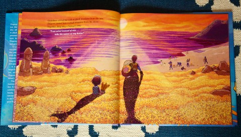 I talk a lot on this blog about the riches children’s books give us, many which extend well beyond literacy. Here, alongside our children, we have a chance to dive into a corner of the world most of us know little about and behold a fascinating, generations-old tradition. A tradition which centers women. The book’s Afterward notes that, while the haenyeo have at times faced criticism for their dangerous and physically demanding work, they have also been praised as “indigenous businesswomen and indigenous marine biologists.” The Ocean Calls showcases the power of their practice, as much for these real mermaids’ own livelihood, as for the way they inspire a new generation to seek out a delicate, intimate relationship with our most wondrous natural resource.