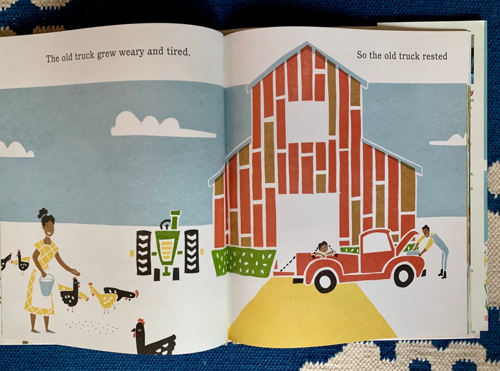 The Old Truck is a story of time passing: of a truck that works hard, that “grew weary and tired,” that “dreamed” at night, much like the girl herself, of sailing the seas and chasing the stars. It’s a story of a truck that comes to be parked for good alongside the barn, usurped by shinier, newer machines. It’s a story of a daughter who outlives her parents, who takes over the farm and works long days herself, who one day tows the old truck out from the overgrown grasses and restores it, piece by piece, so it can still give to the world. It’s a story of imagination, hard work, loyalty, and pride.