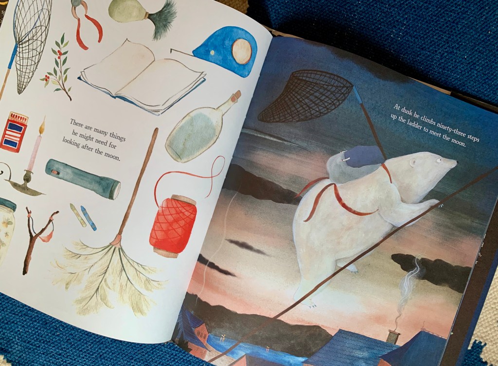 There is no shortage of picture books about the moon waxing and waning, but this one goes straight to the top. To page through The Moon Keeper is to know you’re in the presence of something truly special: eloquent, gorgeous, quietly witty, and deeply compassionate. (Plus very cute polar bear butts.)