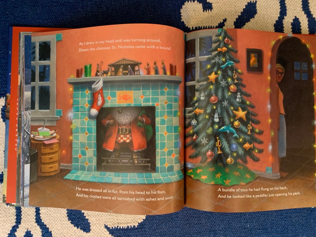 Traditionally on Christmas Eve, I channel my father and do a stirring rendition of Clement C. Moore’s poem “The Night Before Christmas,” before the kids head up to bed and pretend to sleep. First published in 1823, Moore’s description of St. Nicholas and his eight flying reindeer, landing on rooftops and sliding down chimneys, has shaped our Western portrait of Santa Claus for the past 200 years. And yet, in almost every case, Moore’s words have been illustrated to center a white, upper middle-class family in a small New England town.