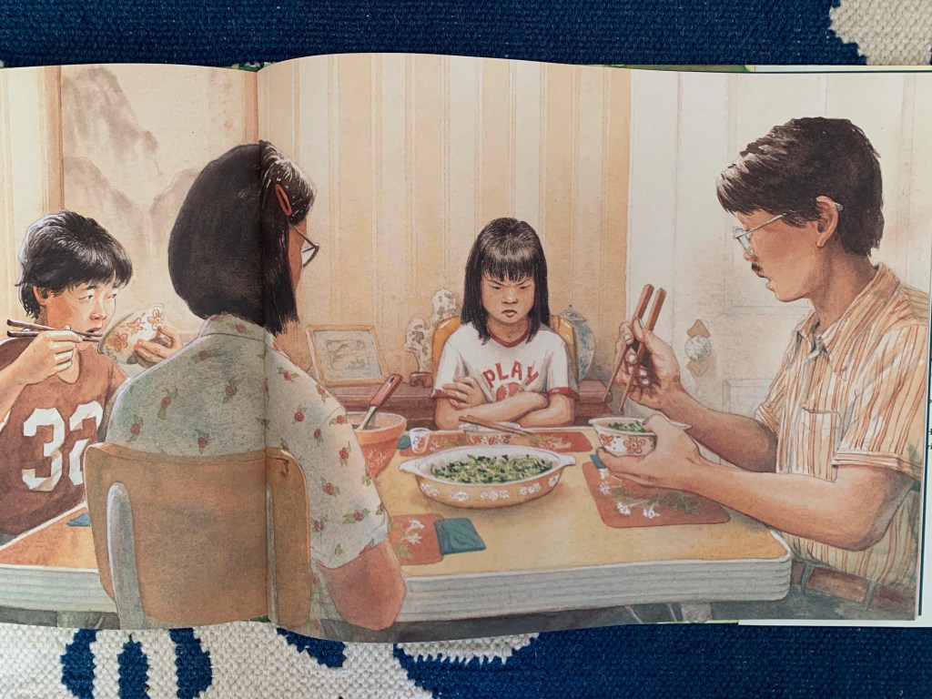 Now, when the girl looks at the bowl of watercress on the table, she feels not anger or resentment, but regret: “I am ashamed of/ being ashamed of/ my family.” And when she tastes it for the first time, she likens its delicate but “slightly bitter” taste to “Mom’s memories/ of home.”