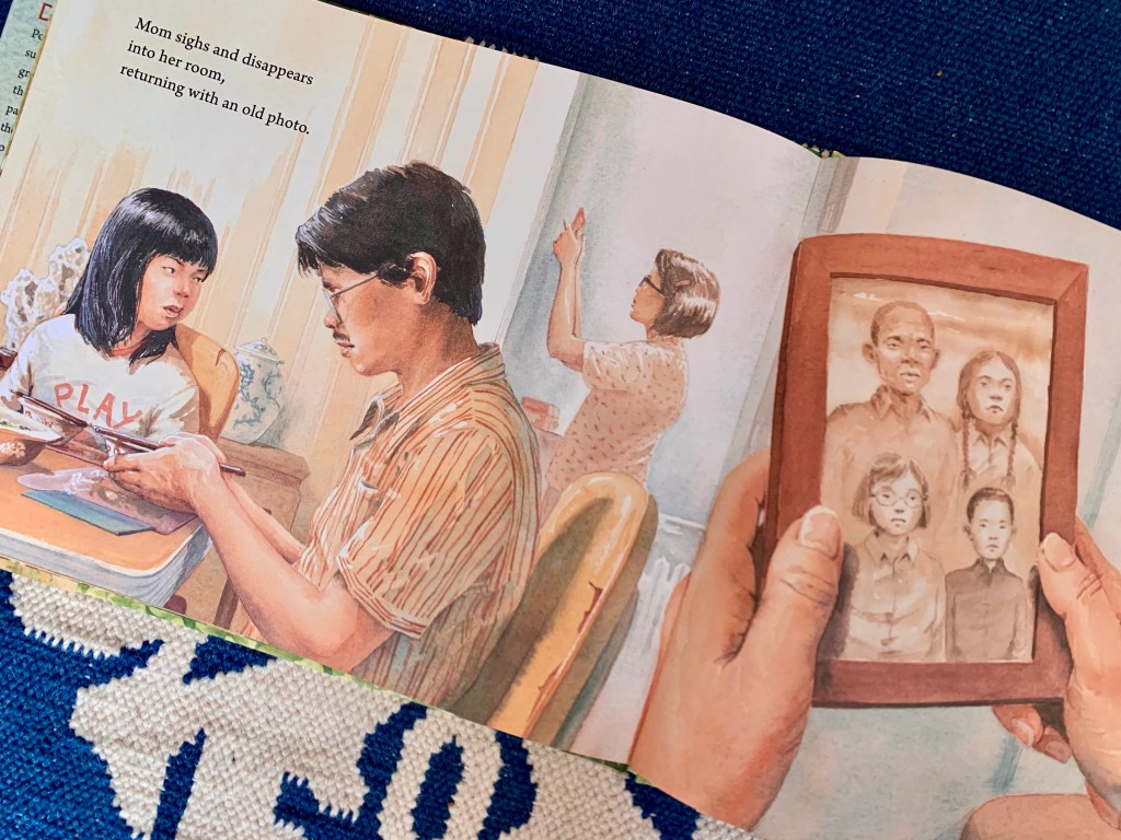 But then her mother shows her a family photograph “from before,” one of only a few times she has ever spoken to her daughter of “her China family.” In the photograph, standing beside her young mother, is an even smaller boy—“‘My little brother. Your uncle.’” The children hold their breaths while Mom continues.
