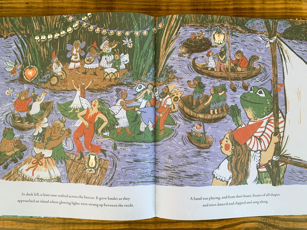 If you can’t beat ‘em, join ‘em. Little Witch Hazel hops aboard a raft with friends and spends the day floating down the river, going “nowhere in particular,” because that’s the best part about summer. As day turns into night, live bands strike up on the shore, and the water transforms into a jubilee of singing and dancing under twinkling lanterns. (How many months until summer again?)