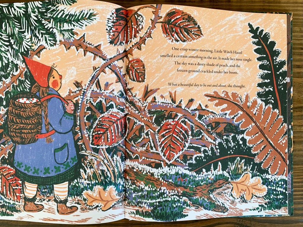 Winter’s “The Blizzard” is my personal favorite, because just take a gander at these atmospheric spreads! Has snow ever looked more magical? It feels pretty magical to Little Witch Hazel, too, as she sets out on her rounds, tending to chipmunk toothaches and newborn bunnies. She even pulls a frog out of a crow’s throat! (Is there anything our intrepid heroine can’t do?)