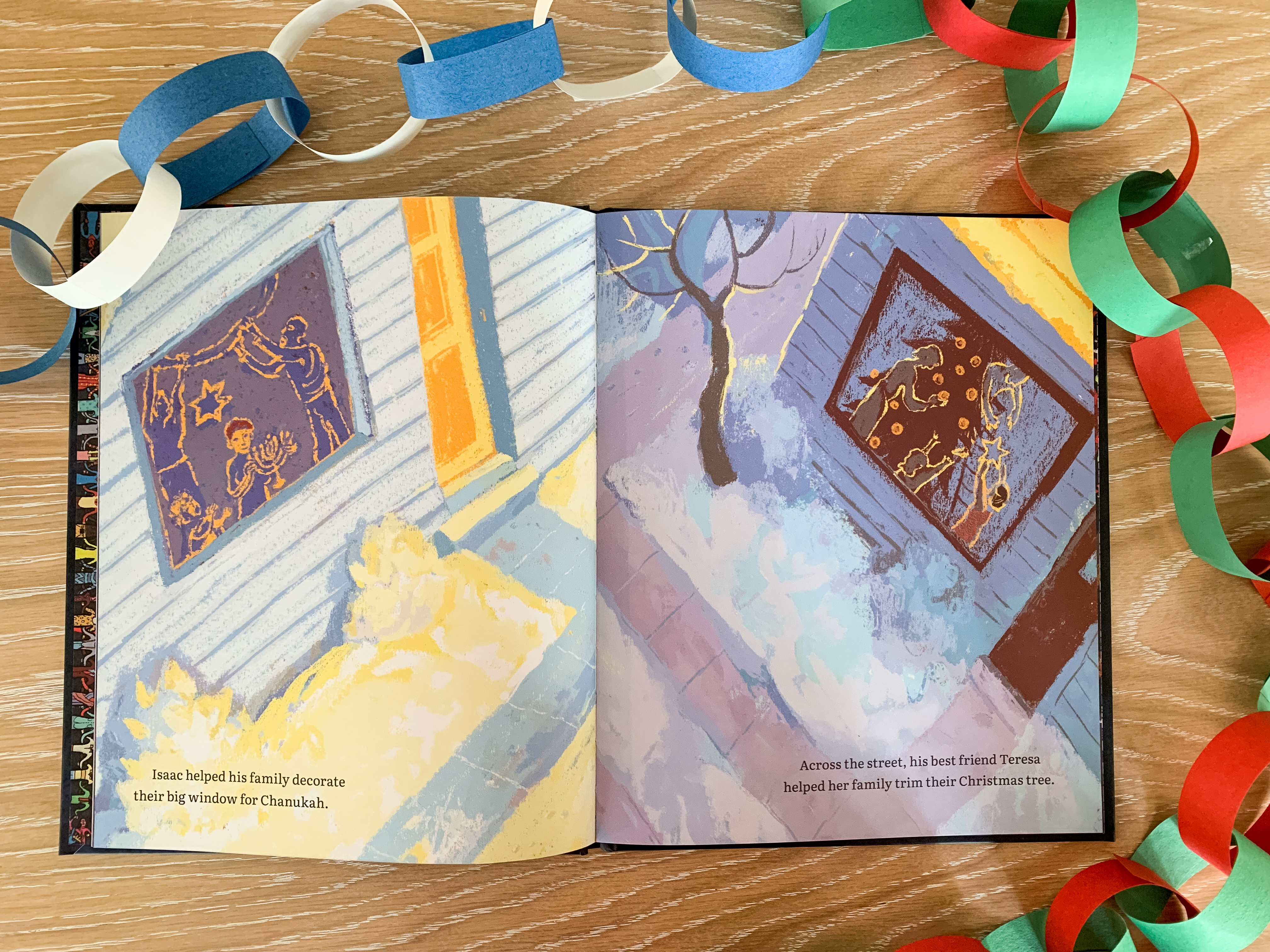 What Isaac does know is that his family needs to light their menorah again. “If they didn’t, Isaac knew it would be like hiding they were Jewish. That didn’t feel right.” And the next night, when Teresa looks out her window and sees her friend’s house glowing blue and white once more, she “let out a breath she hadn’t known she was holding.”