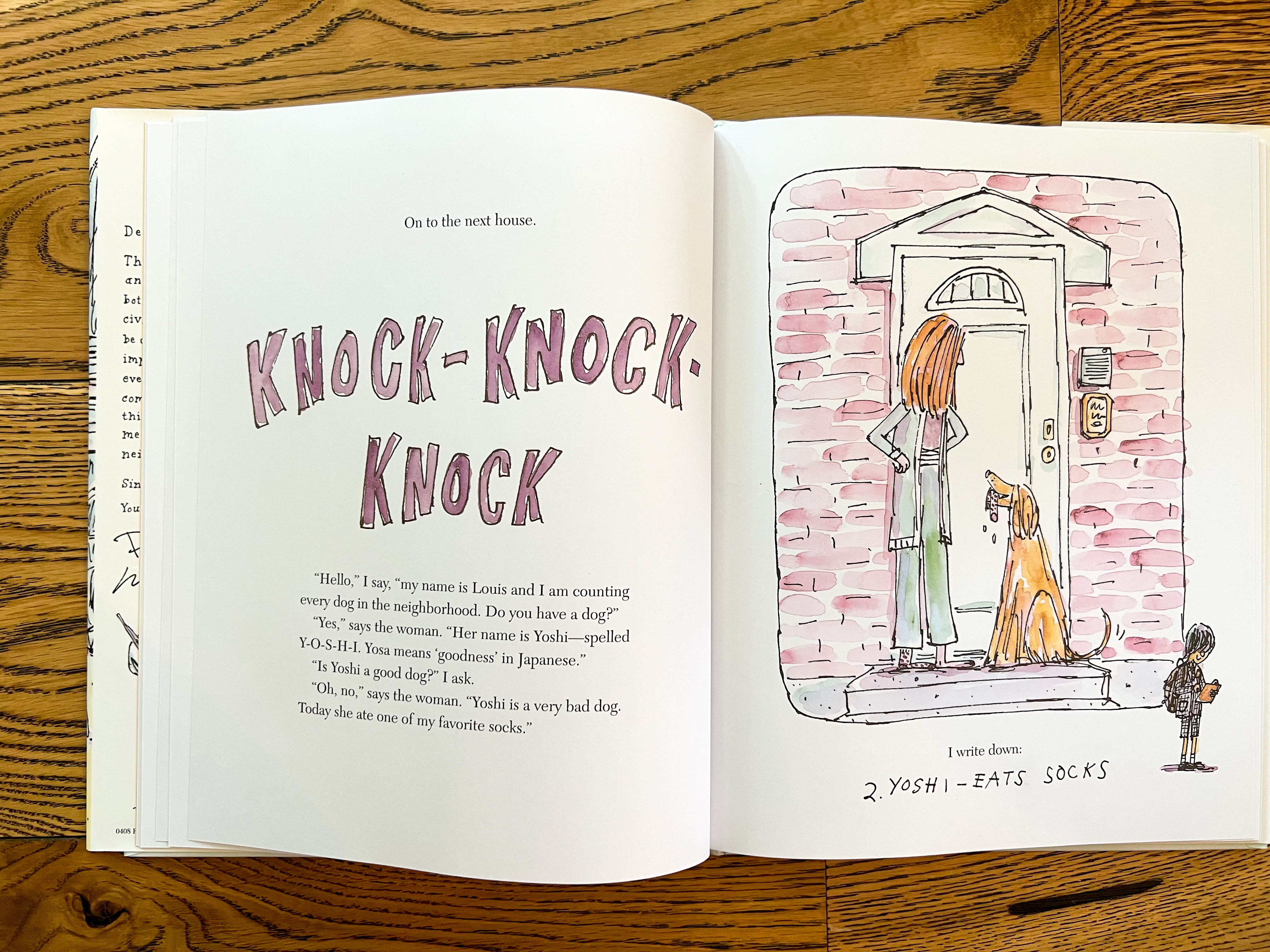 Dear, sweet Louis, with his backpack of supplies and matter-of-fact interrogations at every house in the neighborhood! His earnestness reminds me of my son at that age. With each ring of the doorbell, Louis learns about the four-legged inhabitants, but he also learns about the people who love them, despite (because of?) their many quirks. It’s a marvelous window into the world of dog ownership, not to mention a look at the magic that happens when adults give free reign to children’s ideas.