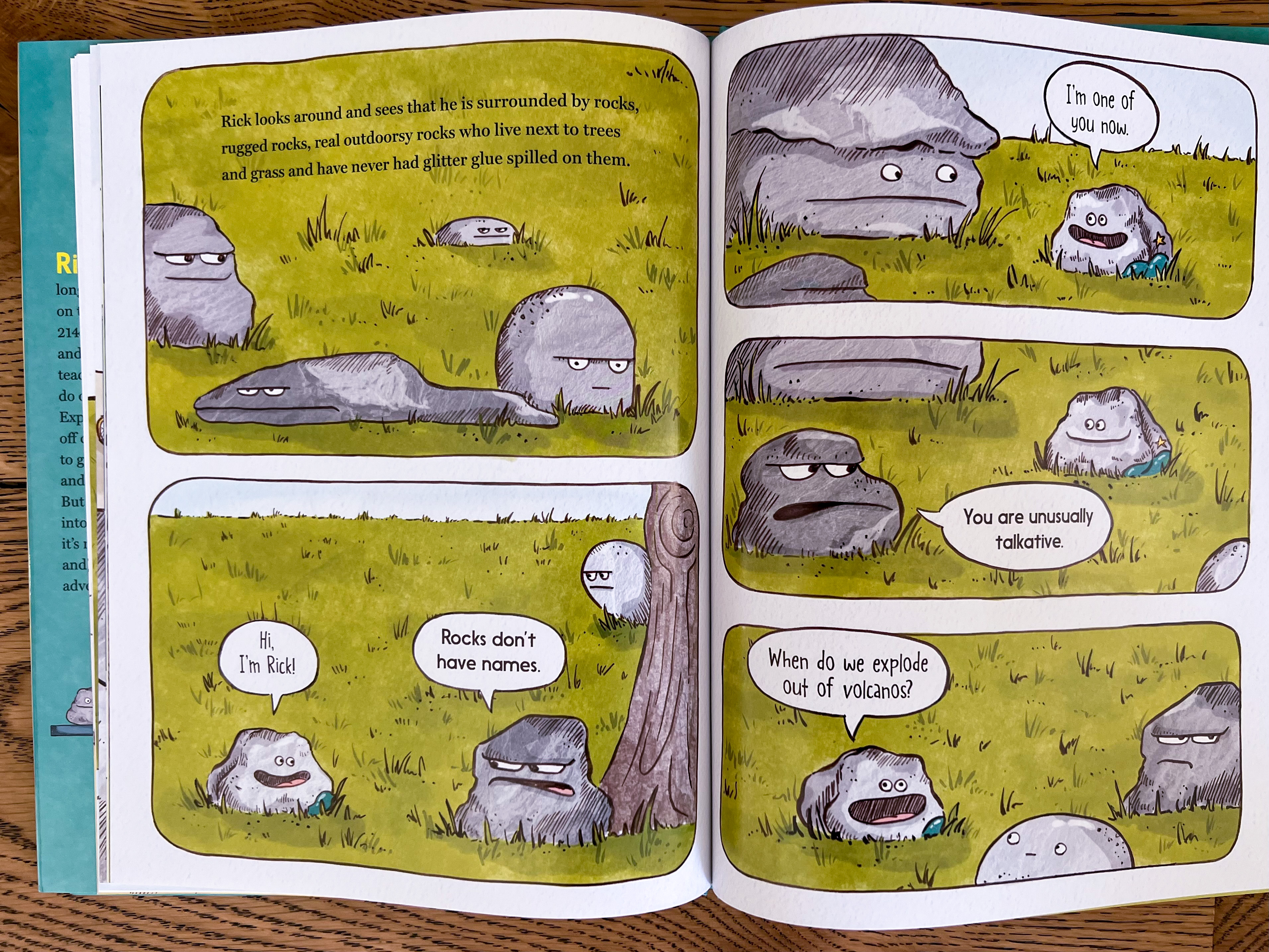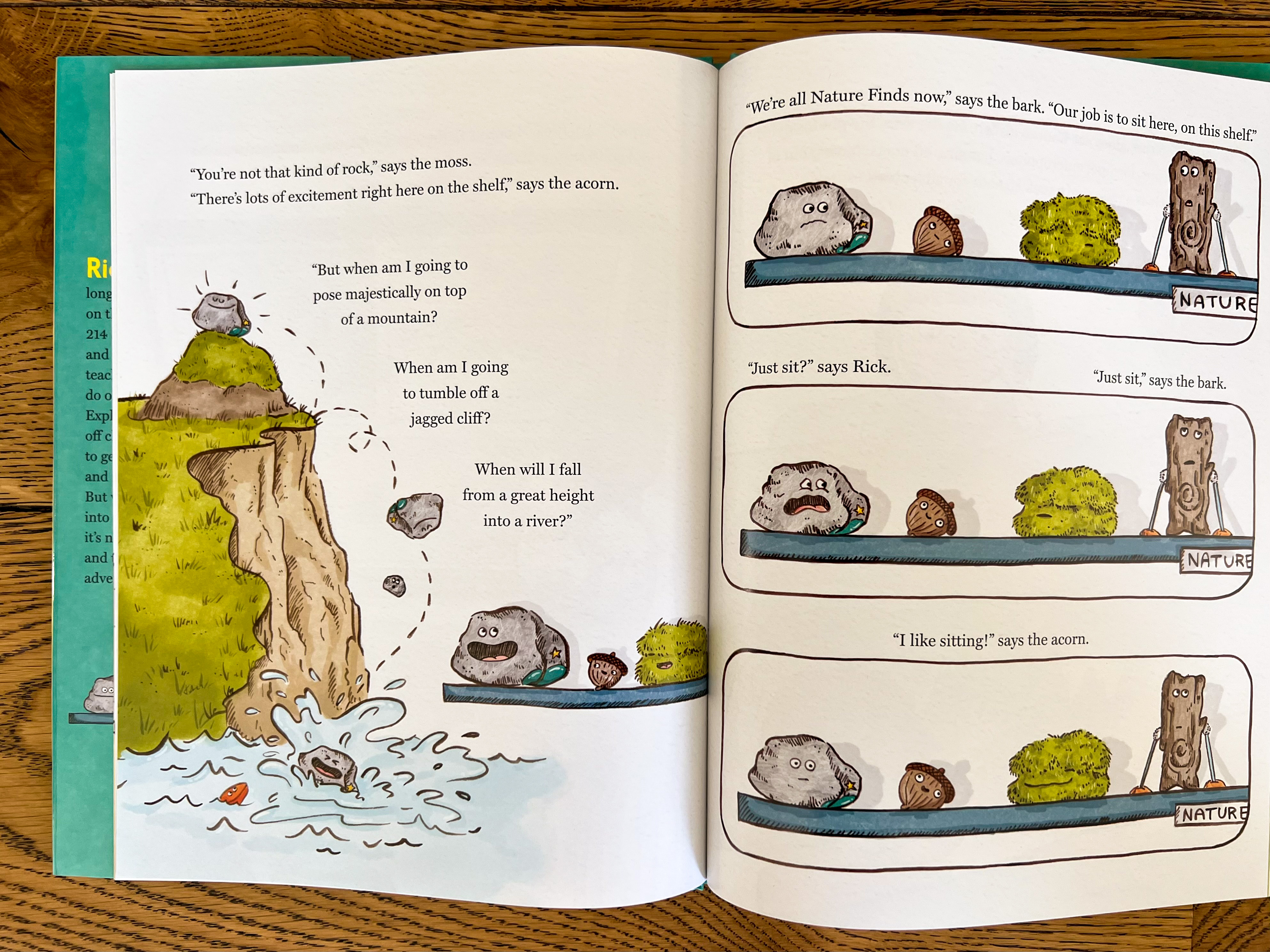 For as long as Rick can remember, he has sat on the Nature Finds shelf in classroom 214, alongside an acorn, some moss, and a piece of bark. But when he overhears the teacher giving a lesson on all the cool things rocks can do (they explode out of volcanoes?!), he makes up his mind to hitchhike his way into the Great Outdoors to exploit his untapped potential.