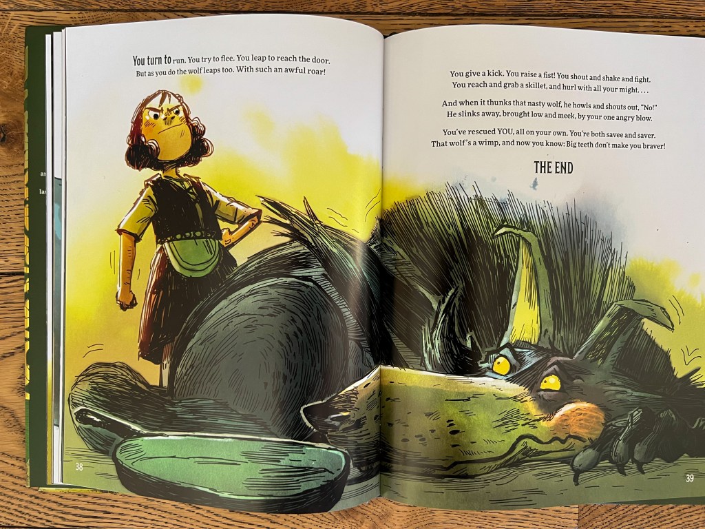 Across 85 dramatically illustrated pages, Endlessly Ever After summons and contorts bits from classic fairy tales into riotous chaos, including “Little Red Riding Hood,” “Hansel and Gretel,” “Sleeping Beauty,” “Snow White,” and “The Three Little Pigs.” Pre-readers will love directing their readers, while newly independent readers will enjoy having the reigns all to themselves.