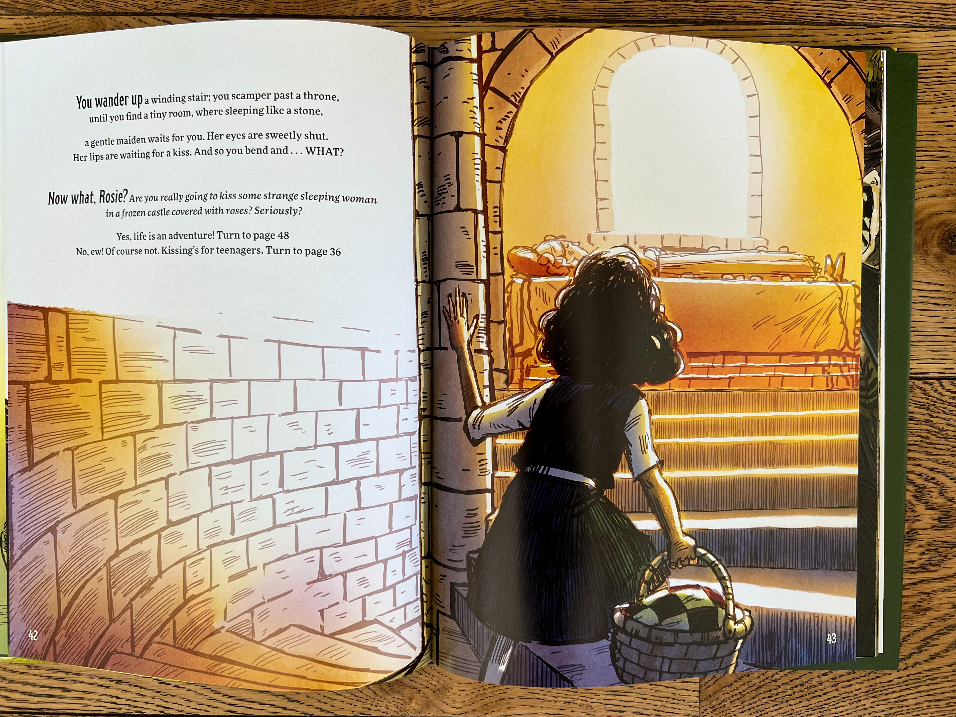 Gone are the tiny paperbacks with miniscule type and black-and-white sketches that dominated our childhoods: this Choose Your Own Path book boasts full color, a large trim size, gorgeous art, and just as many LOLs as preposterous perils.