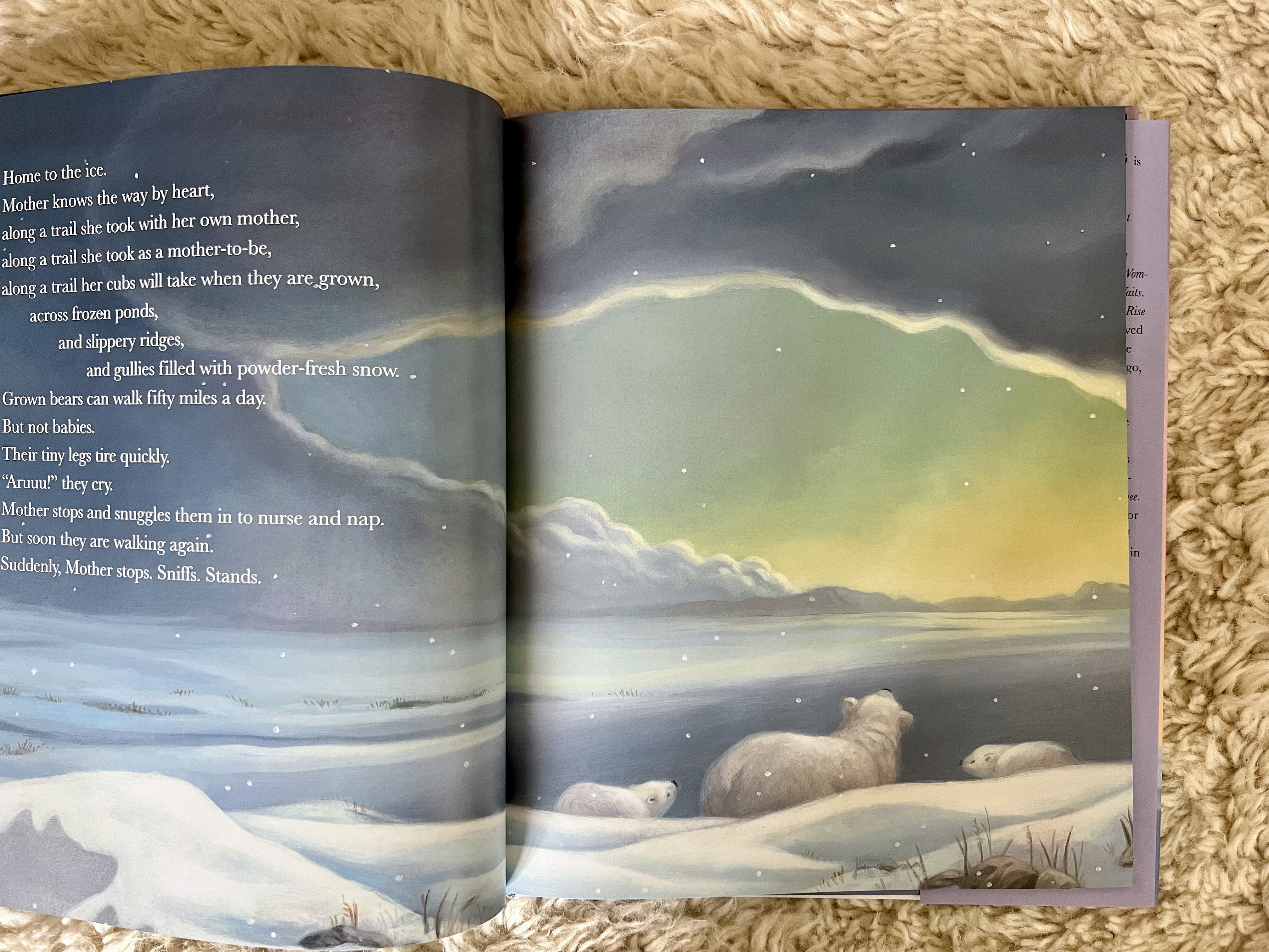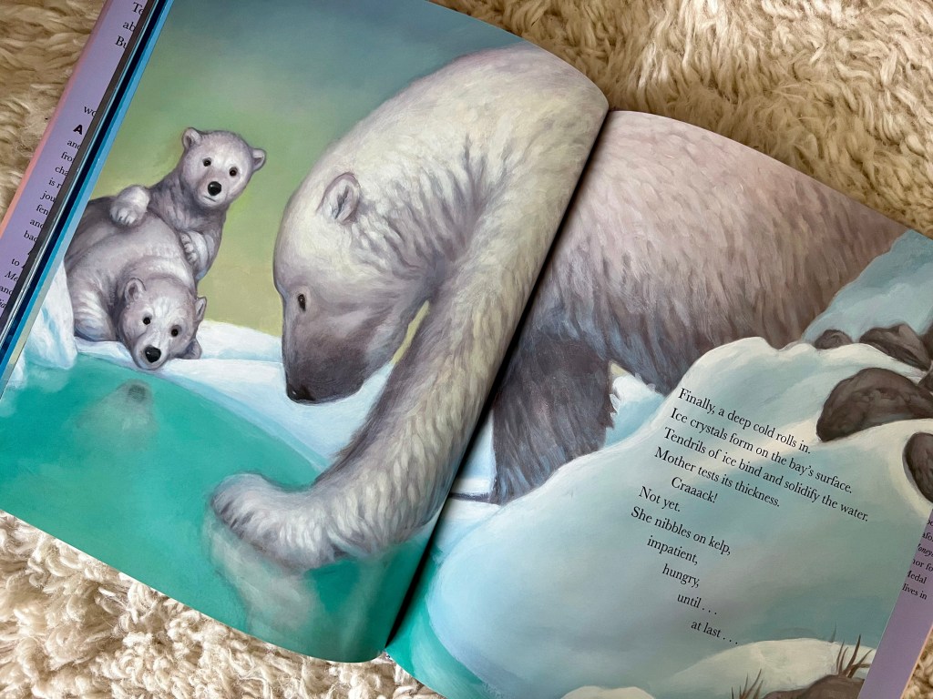 As the rest of the year plays out, we are treated to more dramatic highs and lows. The book’s pacing is perfection, as is the way the changing light dances on the page, as spring turns to summer and autumn to winter. As the cubs remain close to their mother for the first critical year of their life, we are shown not only what it means to survive in a threatened world, but how deep a mother’s love runs.