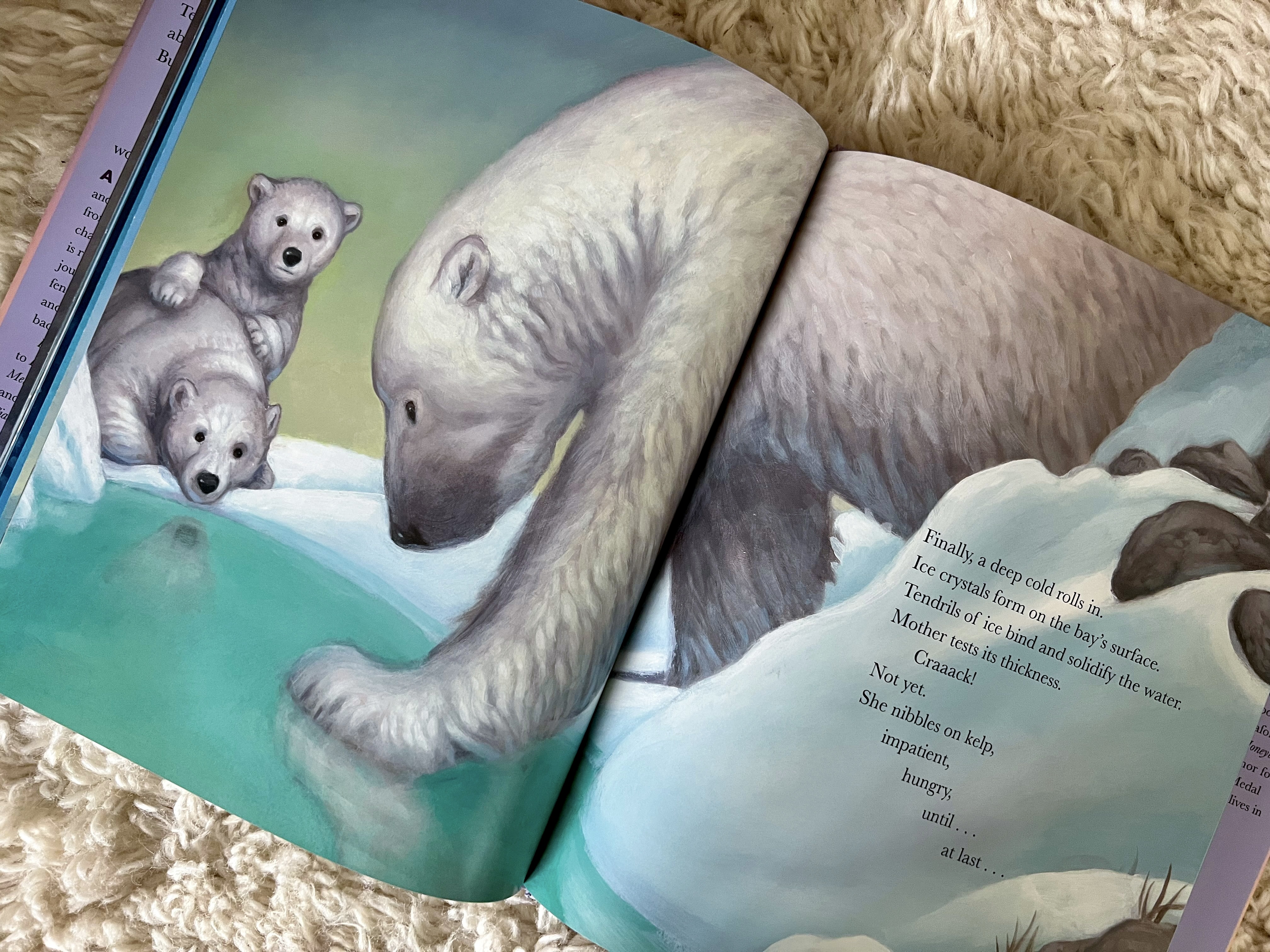 It’s not just the stunning, oversized oil paintings on every page that make this the standout title of polar bear troves. (Seriously, though, can we talk about the gatefold in the middle of the story?!) Equal parts entertaining and educational, Polar Bear (ages 4-9) is read-aloud gold. The dramatic, lyrical text puts us front and center in an epic, year-long journey of survival. It’s a nail-biter of a odyssey, fueled by instinct and love and threatened by an ever-changing landscape, as a mother polar bear shepherds her two cubs across months and miles of obstacles to find the ice they desperately need to survive. (Rest assured: they all make it.)