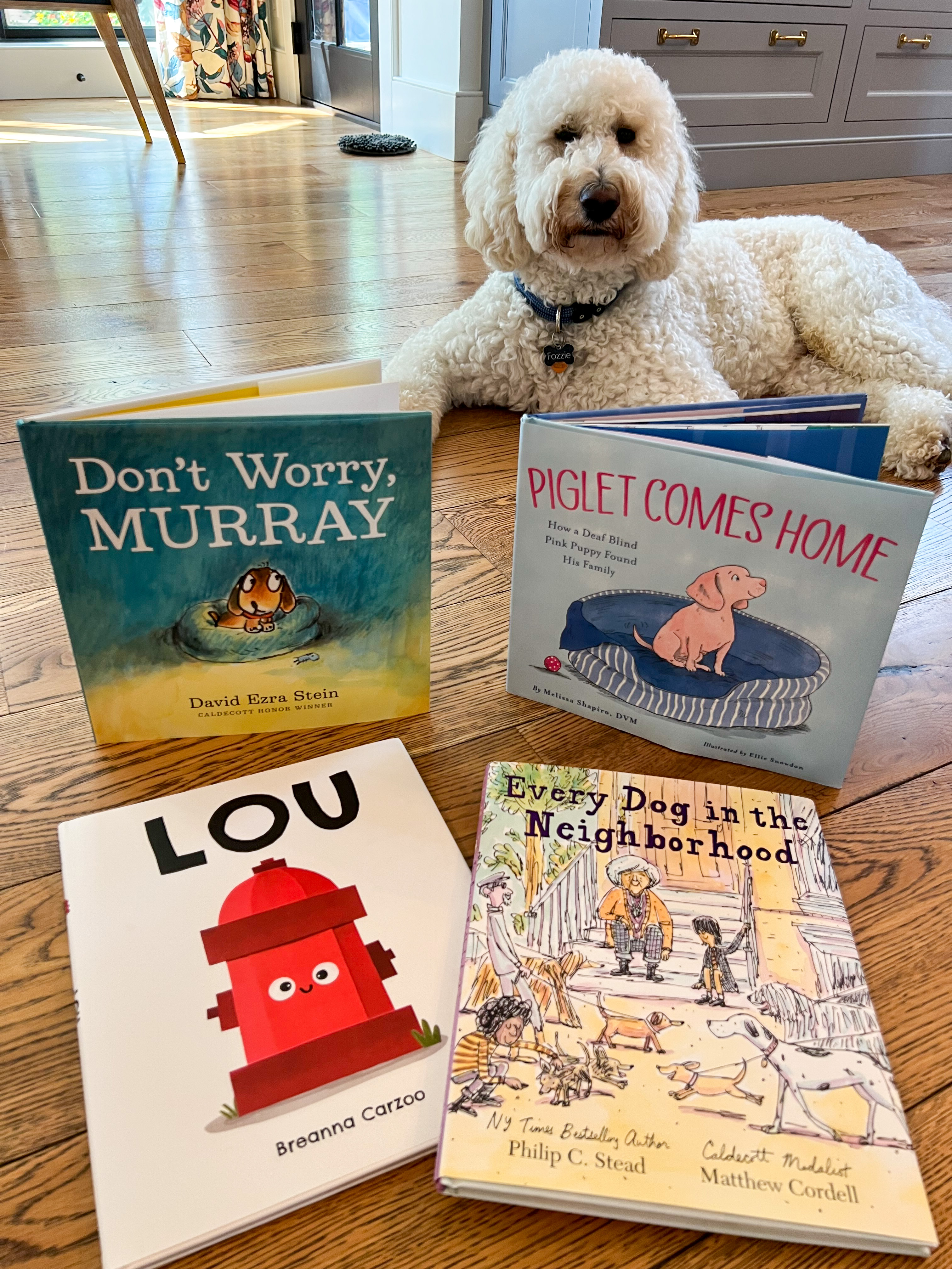 Bathe the Cat is a guaranteed crowd pleaser. The rhyming text relishes being read aloud, and the giggles will only increase with repeat readings. We’re well outside the age range over here, and my kids were still delighted by it. Much the way the four of us have been delighting in our new doodle puppy, who can’t manage to chase a ball across the wood floor without at least three of his legs splaying in different directions. Whose muppet face breaks out into the silliest lopsided grin when you scratch his neck, and whose paws move to their own mysterious beat when he’s sleeping.