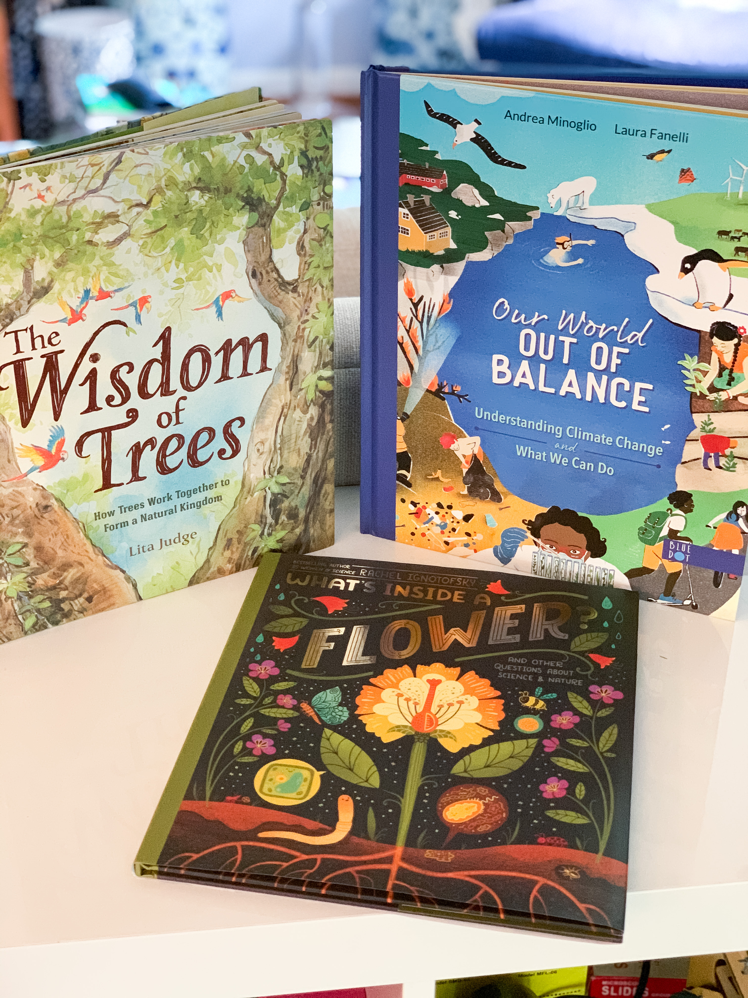 Every year on Earth Day, I smile thinking about my son at age four, who looked up at me with his big brown eyes and asked, “Mommy, aren’t we supposed to care about the Earth every day?” Yes, my boy. Same with Black history and women’s history and all the rest of these annual celebrations. But it sure is nice, now and then, to be nudged to think about our home libraries, about how we might freshen them up in a way that leads to better, richer dialogues with our children. After all, books bring with them such marvelous reminders of what a special, precious gift this planet is.
